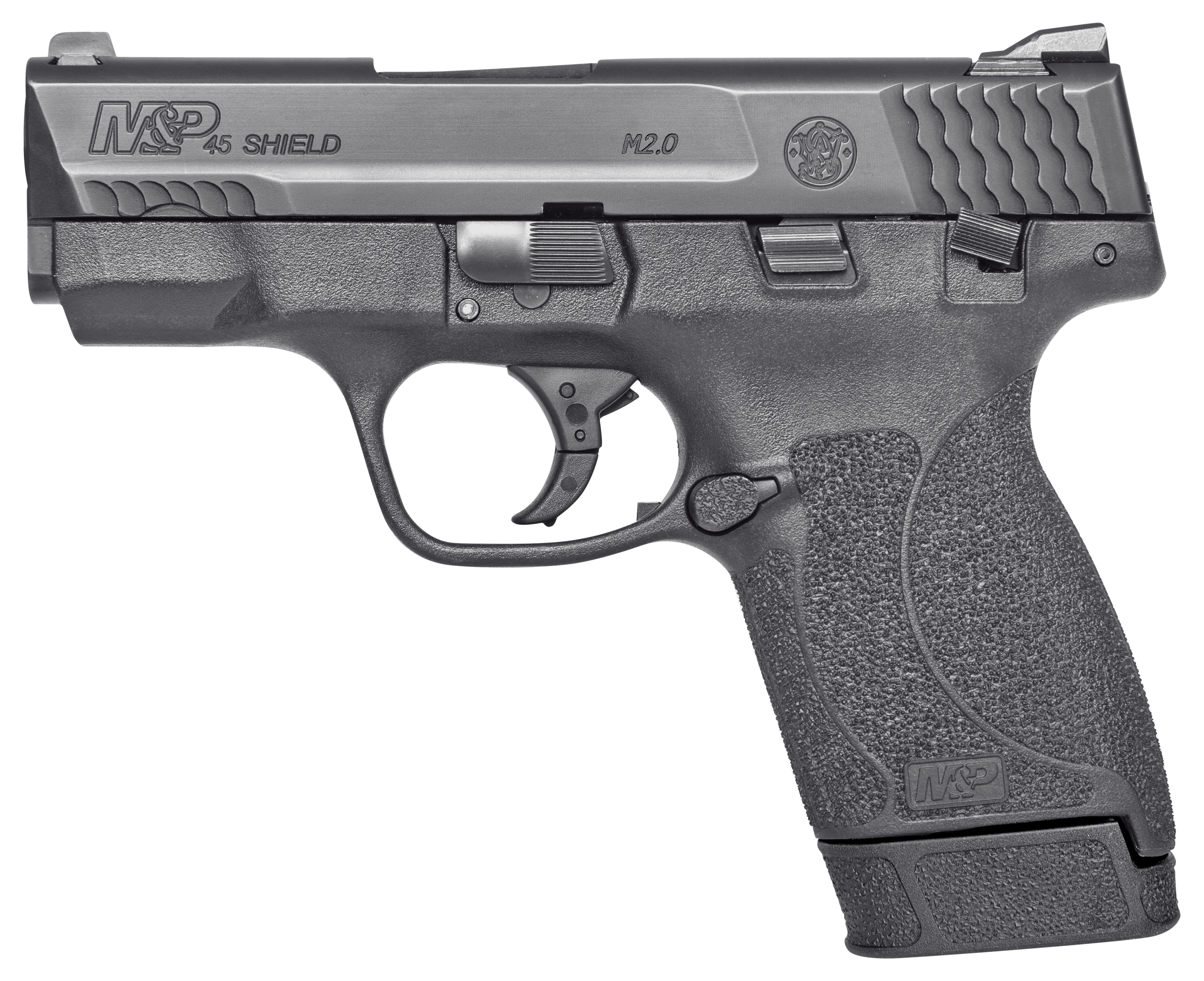 The M&P45 Shield M2.0 is an easy-to-conceal pistol that offers professional-grade features simple operation and reliable performance. With its aggressive grip texture crisp trigger and thin profile it can be comfortably carried all day. - CALIBER 45 AUTO - BARREL LENGTH 3.3 - CAPACITY 7+1 rounds - Model M&P45 Shield M2.0 - Weight 20.5 oz. (581.2 g) - Rear Sight 2 White Dots - Grip Slim textured - Front Sight White Dot - Width 1.05 (2.6 cm) - Barrel 3.3 (8.4 cm) Stainless steel w/Armornite� finish - Overall Height 5.0 (12.7 cm) - Frame Size Compact Slim - Slide Stainless Steel with Armornite� finish - Overall Length 6.45 (16.4 cm) - Action Striker-fired semi-automatic - Frame Black Polymer - Sight Radius 5.3 (13.5 cm) - Rifling 1:15 Twist
