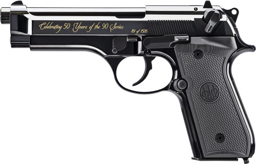 FIFTY YEARS AGO THE 90 SERIES WAS BORN PIONEERING A LEGACY THAT WOULD SHAPE MILITARY LAW ENFORCEMENT AND CIVILIAN SIDEARMS FOR GENERATIONS. To celebrate 50 years of the legendary 90 Series Beretta releases the 92SB Repro. A faithful limited-edition reproduction of the third model in the iconic lineup. Designed for collectors and enthusiasts who appreciate heritage this modern classic features a polished anodized frame polished blued slide and barrel rounded trigger guard and flat dust cover along with all-metal components and upgraded internals like the short reset trigger bar and D hammer spring. Finished with G10 grips each pistol comes in special collector's packaging and a history booklet chronicling the 90 Series legacy. With Celebrating 50 Years of the 90 Series engraved on the slide and a unique serial number this is your chance to own a true piece of Beretta history as only 1526 units will be produced. - REPRODUCTION OF THE 92SB First introduced in the early 1980s the original 92SB marked a pivotal evolution in the 90 Series bridging the gap between the original Model 92 and the military-adopted 92F. The 92SB Repro celebrates this legacy with faithful styling and modern craftsmanship honoring a defining chapter in Beretta's history. - SHORT RESET TRIGGER BAR The short reset trigger bar enhances speed and control allowing for faster follow-up shots and a more responsive shooting experience. - ALL METAL COMPONENTS Constructed with all-metal components including the recoil rod trigger safety levers magazine release and lanyard loop ensures enhanced durability consistent mechanical performance and optimal balance for precision shooting. - G10 GRIPS AND CUSTOM PACKAGING Precision-machined G10 grips offer a confident textured hold while adding a touch of commemorative elegance perfectly complementing the pistol's custom collector packaging and historical presentation. - MAGAZINES Two 15-round magazines with flat baseplates deliver reliable feeding and preserve the classic silhouette all housed in the pistol's bespoke collector's packaging for an authentic unboxing experience. - 92SB 50TH ANNIVERSARY EDITION SPECIFICATIONS - ACTION SEMI-AUTO - FIRE CONTROL HAMMER-FIRED DA/SA - BARREL LENGTH 4.9 IN - CALIBER 9X19 - GRIP WIDTH 3.5 IN - MAGAZINE CAPACITY 15 ROUNDS - OVERALL HEIGHT 5.5 IN - OVERALL LENGTH 8.5 IN - OVERALL WIDTH 1.5 IN - SIGHT RADIUS 6.11 IN (155 MM) - WEIGHT (UNLOADED) 34.1 OZ - ACCESSORIES - INCLUDED IN SPECIAL - COLLECTOR'S BOX - (2) MAGAZINES + FLAT BASE PLATE - CHALLENGE COIN - HISTORY OF THE 90 SERIES BOOKLET