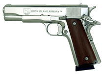 Action: Single - Caliber: 45 ACP - Capacity: 8 - Grips: Wood - Finish: Nickel - Frame: Steel - Barrel Length: 5 - Sights: Fixed - Weight: 2.47 lb. - Chambered in .45acp and outfitted with smooth wood grips and a high-polish nickel finish this is the 1911 Standard GI Series. Faithful to the original 1911 design the Standard GI is equipped with a 5 inch barrel fixed sights and an 8 round magazine. Perfect for the first time shooter or collector.