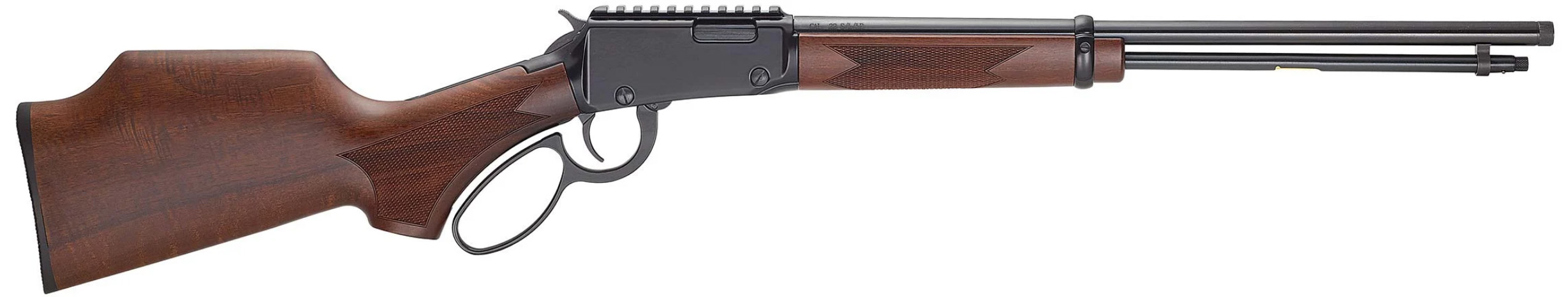 Action Type Lever Action - Caliber .22 Magnum - Capacity 12 Rounds - Barrel Length 18.5 - Barrel Type Round Blued Steel - Rate of Twist 1:16 - Overall Length 35.5 - Weight 5.25 lbs. - Receiver Finish Black - Scopeability Integrated Picatinny Rail - Scope Mount Type Ringmounts for Picatinny Rail - Stock Material American Walnut - Stock/Grip Style Checkered Pistol Grip Monte Carlo - Length of Pull 13 - Safety 1/4 Cock - Best Uses Target/Hunting/Small Game - Embellishments/Extras 1/2 x 28 Threaded barrel