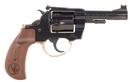 Action Type Traditional Double-Action - Caliber .357 Magnum/.38 Spl - Capacity 6 Rounds - Barrel Length 4 - Barrel Type Round Blued Steel - Rate of Twist 1:16 - Overall Length 9 - Weight 34 oz. - Receiver Finish Polished Blued Steel - Rear Sight Fully Adjustable - Front Sight Ramped Fiber bead - Stock Material American Walnut - Stock/Grip Style Birdshead Grip - Safety Transfer Bar - Best Uses Target Collector