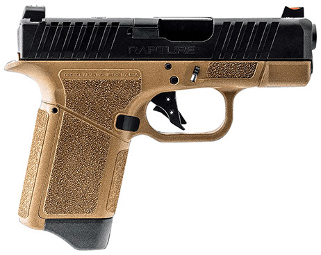 GForce Arms Inc. is proud to announce the GF9 Rapture sub-compact handgun made here in the U.S.A. - Rich in features the GF9 Rapture boasts front and rear slide serrations for fast weapon manipulation. Out of the box fiber optic sights are equipped and an optics ready slide able to mount any red dot using a RMR and RMSC (shield) footprint. A 3.25 9mm precision barrel to ensure you are putting accurate rounds on target. With aggressive stippling on the grip and Heavythumb rest the GF9 Rapture makes recoil management easy. A flat faced trigger aids in a smooth trigger pull. In addition four grip backstraps are included (0� 2� 4� and 6�) to create the perfect grip angle for the shooter. - The GF9 Rapture is a game changer for aftermarket part support. Fully customizable trigger slide barrel sights and optics. This allows the end user to truly make the GF9 Rapture their own; with the additions of different trigger weight slide ergonomics barrels and suppressors as well as red dots. - The GF9 is compatible with the Glock 26 all except the magazines. - FEATURES - STYLE 9MM Sub-Compact Handgun - MANUFACTURER GForce Arms USA - CHAMBER 9mm - BARREL LENGTH 3.25 - FRONT SIGHT Red Fiber Optic - REAR SIGHT Green Fiber-Optic - MATERIAL Glass-Filled Polymer and Steel - MAGAZINES Comes with two (2) 10 or 12 round magazines - OVERALL WEIGHT 1.4lbs (empty) - OVERALL LENGTH 6.6 - OVERALL HEIGHT 5.1 (with magazine) - OVERALL WIDTH 1.1 - SLIDE OPTICS FOOTPRINT COMPATIBILITY RMR and RMSC (shield)