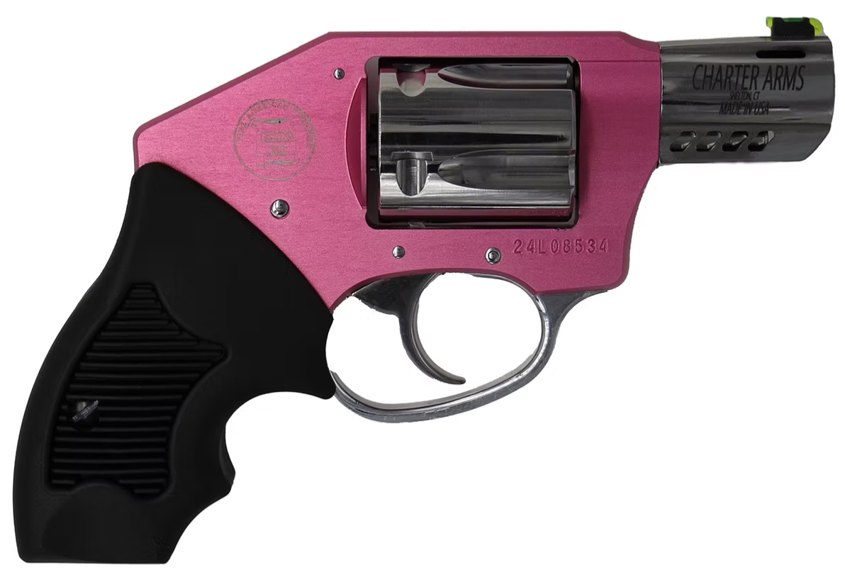 The Charter Arms� Coyote Series is a new series of rimless revolvers that utilize moon clips. The Coyote is the smallest lightest .380 five-shot revolver on the market. Providing a sleek concealable firearm for personal protection. The ease to carry and handle with its light weight and low recoil allows new defense ammunition to be shot effortlessly. Equipped with a ported barrel and diamond cuts the combination of stainless steel and aircraft aluminum as well as two moon clips make the Coyote a top choice for self-defense carry. - Caliber: .380 ACP - Capacity: 5 Shot - Frame: Small - Frame Material: Aluminum - Finish: Pink Anodized Frame & Hi-Polish Components - Grip: Small Compact Rubber - Sights: LitePipe - Hammer: Concealed - Barrel: 2 Ported - Weight: 13 Ounces - Length: 6.25 - Height: 4.25