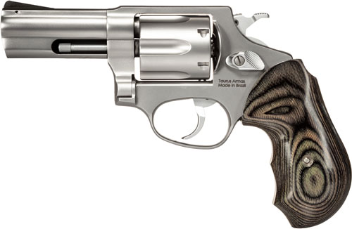 Double Action/ Single Action Revolver - 357 Magnum / .38 Special +P - 6 Rounds - 3 Stainless Steel Barrel - 1:16.5 Barrel twist 6 Grove Rifling - Laminate Grips - Blade Sights - Satin Stainless Steel Cylinder - Satin Stainless Steel Frame - Overall Height 5.47 - Weight 27.3 oz Ounces - Stainless Steel Finish