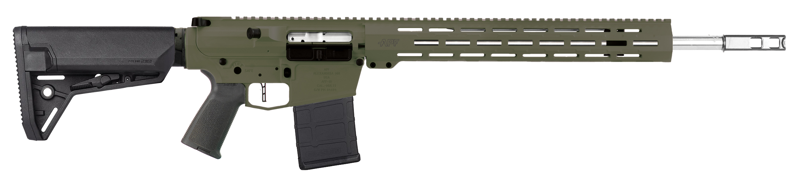 Dominate the long-range game with the APF Armory AR10 DMR 2.0 a precision-crafted beast engineered for elite performance and unyielding power! - Hand-built by Alex Pro Firearms in Alexandria Minnesota this American-made AR-10 DMR is the pinnacle of long-range shooting hunting and tactical dominance. - Featuring a 18-inch 416 stainless steel barrel the DMR 2.0 delivers surgical accuracy in hard-hitting calibers like 22-250 REM .243 Win .308 Win 6mm Creedmoor and 6.5 Creedmoor. - The 15-inch MLOK handguard maximizes customization letting you mount high-end optics bipods or lights for any mission. Paired with a Butcher-16 muzzle brake to crush recoil and muzzle rise and a Nickel Boron BCG for buttery-smooth cycling this designated marksman rifle is built for relentless reliability. - The APF drop-in 3.5lb single-stage flat trigger ensures crisp responsive shots while the Magpul PRS stock and MOE grip offer unmatched comfort and control. - Dressed in bold Cerakote finishes like Flat Dark Earth Tactical Mermaid or Stealth Gray (among many other options) the AR10 DMR 2.0 is as striking as it is deadly.