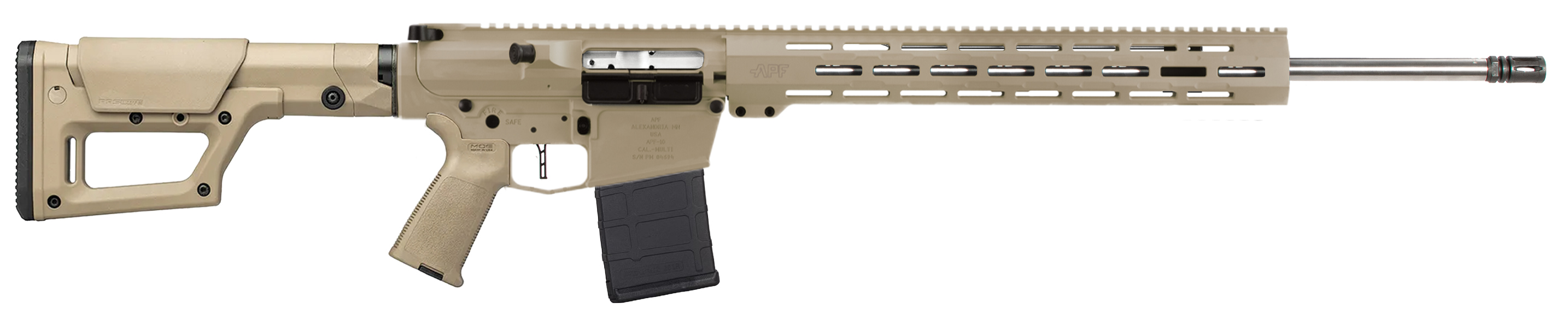 Twist Rates: - 22-250 REM: 1:14 in Stainless Steel 1:12 in Carbon Fiber (CALL US for Carbon Fiber Upgrade) - .22 Creedmoor: 1:8 - 243 WIN: 1:10 - 6mm Creedmoor: 1:8 - 6.5 Creedmoor: 1:8 - - Take your varmint hunting to the next level with the APF Armory AR10 Varmint 2.0 a precision-engineered powerhouse built to dominate the fields with lethal accuracy! - Crafted by Alex Pro Firearms in Alexandria Minnesota this American-made AR-10 Varmint rifle is the ultimate weapon for varmint hunting delivering devastating long-range performance against coyotes prairie dogs and other pests. Chambered in hard-hitting 22-250 REM 22 Creedmoor .243 Win 6mm Creedmoor or 6.5 Creedmoor the Varmint 2.0 offers pinpoint precision and stopping power to clear the field with ease. - The 15-inch MLOK handguard offers unmatched customization for optics bipods or lights perfect for low-light varmint hunts. Featuring a Butcher-16 muzzle brake to tame recoil and a Nickel Boron BCG for flawless cycling the Varmint 2.0 guarantees rapid accurate follow-up shots. - The APF drop-in 3.5lb single-stage flat trigger delivers a crisp pull while the Magpul PRS-Lite stock and MOE grip provide ergonomic comfort for extended hunting sessions. - Available in bold Cerakote finishes like Flat Dark Earth Tactical Mermaid or Stealth Gray (among many other options) this rifle blends rugged reliability with head-turning style. Backed by APF's Lifetime Warranty the AR10 Varmint 2.0 is the go-to choice for hunters and precision shooters seeking to eradicate varmints with unmatched efficiency.