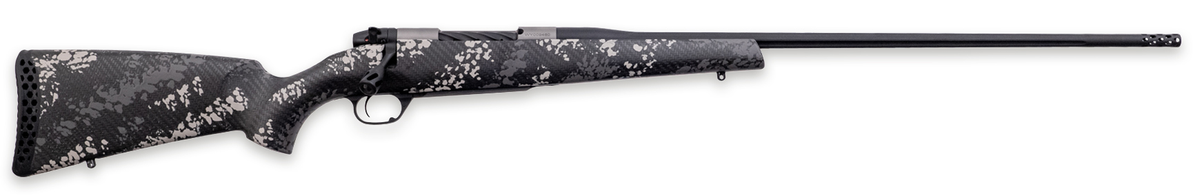 Starting at just 4.7 lbs the Mark V� Backcountry Ti was purpose-built to be the best lightweight mountain rifle on the market. It features Peak 44's Blacktooth carbon fiber stock which weighs only 19oz making it one of the lightest production stocks on the market. Equipped with an Accubrake� ST and 3D Hex Recoil pad the Backcountry 2.0 series manages recoil extremely well even with Weatherby's historic magnum cartridges. The titanium action has an incredible strength-to-weight ratio cutting even more weight than the standard steel action. When ounces and accuracy matter grab the Backcountry Ti. - FINISH - Fluted Barrel / Trigger Guard / Bolt / Bolt Knob / Safety- Graphite Black Cerakote - Stock- Peak 44 Blacktooth carbon fiber stock with Grey and White sponge pattern accents