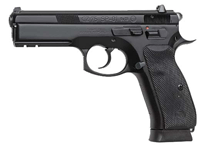 Caliber: 9mm - Magazine Capacity: 18 - Magazine Type: Double Stack - Frame: Steel - Grips: Rubber - Trigger Mech: DA/SA - Sights: Fixed Night Sights - Barrel: Cold Hammer Forged - Barrel Length: 4.600 in - Weight: 2.400 lbs - Overall Length: 8.150 in - Height: 5.790 in - Width: 1.460 in - Safety: Manual Safety - Safety: Stop on Hammer Firing Pin Block Safety - The CZ 75 SP-01 is the first full size handgun (4.61 bbl) from CZ to feature the improved manufacturing technology and ergonomics of the NATO-approved CZ 75 Compact P-01 model. Featuring an integral 1913 accessory rail on the dust cover rubber grip panels and CZ�s corrosion resistant black polycoat finish the SP-01 is the newest model to join the family of pistols based on the CZ 75 (SA/DA) platform. Borrowing from the improved grip geometry of the compact P-01 the SP-01 utilizes an extended beavertail to protect shooter�s strong hand as well as allowing for a deeper and more secure grip. The new grip geometry checkering in key areas on the front and back straps and redistribution of mass provided by the accessory rail noticeably decrease the perceived recoil from previous models and allows for more rapid target acquisition and transition.