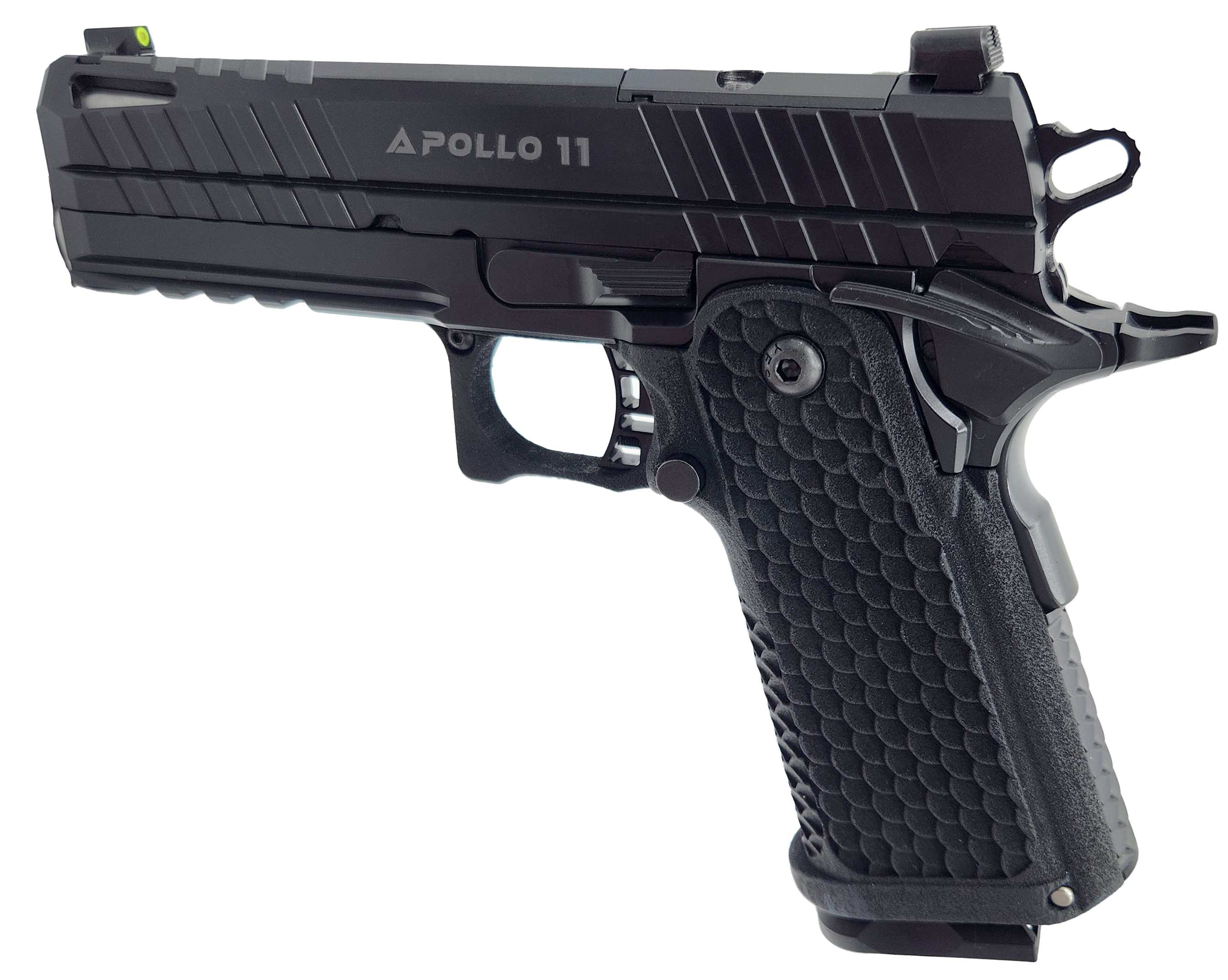 The Apollo 11 Compact 9mm Pistol offers the same exceptional blend of style and performance as its full-size counterpart tailored for those seeking a more compact and maneuverable firearm. This version features a 4.15-inch barrel making it an ideal choice for concealed carry or for users who prefer a more compact profile without sacrificing the superior functionality of the Apollo series. Despite its reduced size the compact model maintains a robust double-stack magazine capacity of 17+1 rounds of 9mm ensuring that firepower is not compromised. - Engineered with precision the Apollo 11 Compact retains the hallmark features of its larger version. It boasts a heat-treated 416 stainless steel slide and a durable 4140 steel frame providing reliability and a sophisticated appearance. The pistol's shorter barrel is matched with a meticulously tuned trigger system for a crisp consistent pull and a left-hand 1:16 rifling ensuring remarkable accuracy in a smaller package. The compact design enhances concealability and handling while the innovative recoil reduction system and ergonomic grip texture offer comfortable shooting and effective control. Equipped with an RMSc optic cut and accessory rails this compact model offers versatility and customization making it a top choice for both everyday carry and tactical applications. The Apollo 11 Compact is a testament to Live Free Armory's dedication to quality and innovation backed by a Lifetime Warranty with reliability guaranteed. - Caliber: 9x19mm - Weight (No Magazine): 32.61 oz - Slide Width: 0.925 - Width (Overall): 1.21 - Slide Length Complete: 6.63 - Length (Overall): 7.5 - Height (Overall): 5.46 - Magazine Capacity: 17 - Barrel Length: 4.15 - Barrel Rifling: 1:16 Left Hand - Length of Twist: 4.11 - Trigger Pull: 3.5lbs - Trigger Travel: 0.310 - Sight Radius: 5.62 - Model: Apollo 11 - Optic Cut (Footprint): RMSc