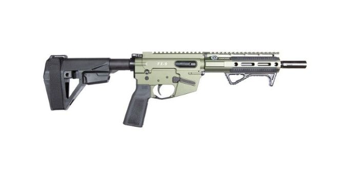 Freedom Ordnance FX9 Elite, Semi-automatic, Pistol, 9MM, 8" Barrel, Flash Suppressor, Anodized Finish, Olive Drab Green, SBA5 Pistol Brace, BCM B5 Grip & Trigger Guard, Warhammer Ambidextrous Charging Handle, Freedom Ordnance Angled Fore Grip, 32 Rounds, 1 Magazine FX9P8E-ODG