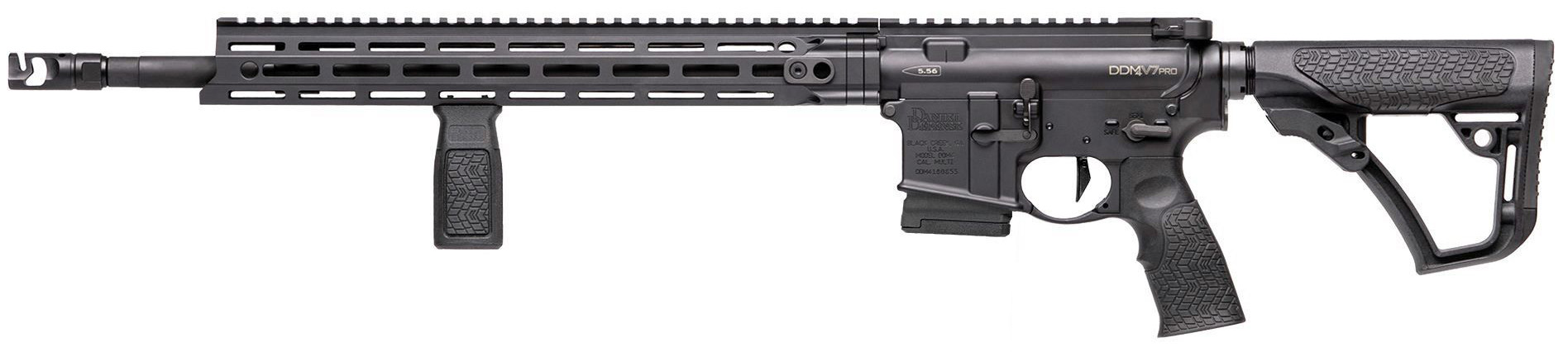 The DDM4 V7 PRO AR15 style firearm is for competitors looking to dominate podiums in today's popular multi-gun matches. Built around our 18 inch Cold Hammer Forged barrel this platform delivers the speed controllability and precision required to engage the most difficult multi-gun stages. - The V7 PRO comes standard with the MFR 15.0 M-LOK rail which offers incredible weight savings as well as superior cooling ergonomics and modularity while maintaining the strength and durability expected from Daniel Defense. An uninterrupted Picatinny rail on top and M-LOK attachment points ensure plenty of real estate for optics and accessories and allow for the maximum sight radius for accurate shooting with rail mounted iron sights. Its muzzle device the Muzzle Climb Mitigator redirects propellant gasses through calibrated ports countering both recoil and muzzle climb. A Geissele Automatics Super Dynamic 3 Gun Trigger delivers rapid hits on target with its light short pull and quick reset. Combined with the softened recoil impulse of a rifle-length gas system this allows for shorter split times more precise follow-up shots and reduced fatigue. The independently ambi GRIP-N-RIP Charging Handle accommodates left- and right-handed shooters. This rifle also comes with the ergonomic Daniel Defense Buttstock and Pistol Grip. - MATERIALS & CONSTRUCTION - LOWER RECEIVER: Mil-Spec with Enhanced Flared Magazine Well and Rear Receiver QD Swivel Attachment Point. CNC Machined of 7075-T6 Aluminum Type III Hard Coat Anodized - UPPER RECEIVER: Mil-Spec with Indexing Marks and M4 Feed Ramps. CNC Machined of 7075-T6 Aluminum Type III Hard Coat Anodized - TRIGGER: Geissele Automatics Super Dynamic 3 Gun Trigger - BARREL: Chrome Moly Vanadium Steel Cold Hammer Forged 1:7 Twist 18 S2W Profile (Daniel Defense's proprietary Heavy Barrel) Chrome Lined Mil-Spec Heavy Phosphate Coated and HP/MPI Tested - GAS SYSTEM: Pinned Low Profile Gas Block CNC Machined of 4140 hardened steel and Mil-Spec Heavy Phosphate Coating Rifle Length Direct Impingement - MUZZLE DEVICE: Daniel Defense Muzzle Climb Mitigator Gen II 17-4 PH Stainless Steel Salt Bath Nitride Finished - BOLT CARRIER GROUP: M16 Profile Mil-Spec MP Tested Chrome Lined Properly Staked Gas Key - BUFFER: H Buffer - SIGHTS: Sold Separately - HANDGUARD: Daniel Defense MFR 15.0 CNC Machined of 6061-T6 Aluminum Type III Hard Coat Anodized - CHARGING HANDLE: GRIP-N-RIP Charging Handle Body CNC Machined of 7075-T6 Aluminum Handles & Latch CNC Machined of 6061-T6 Aluminum Heavy Duty Stainless Steel Roll Pins Type III Hard Coat Anodized - RECEIVER EXTENSION: 6-Position Mil-Spec 7075-T6 Aluminum - BUTTSTOCK: Daniel Defense Buttstock Glass Filled Polymer with Soft Touch Overmolding - PISTOL GRIP: Daniel Defense Pistol Grip Glass Filled Polymer with Soft Touch Overmolding - Made in the USA! - Specifications - Mounting System M-LOK - Caliber 5.56mm NATO - Muzzle Thread 1/2 � 28 TPI (Threads Per Inch) - Gas System Rifle - Barrel Length 18 - Barrel Profile S2W� (Daniel Defense's proprietary Heavy Barrel) - Product Weight 7.40 lbs - Length 34 3/4-37 7/8 (w/ muzzle device) - Magazine Magpul PMAG 10-Round - Case Daniel Defense Full-Latch Impact Plastic Case - Manufacturer Daniel Defense