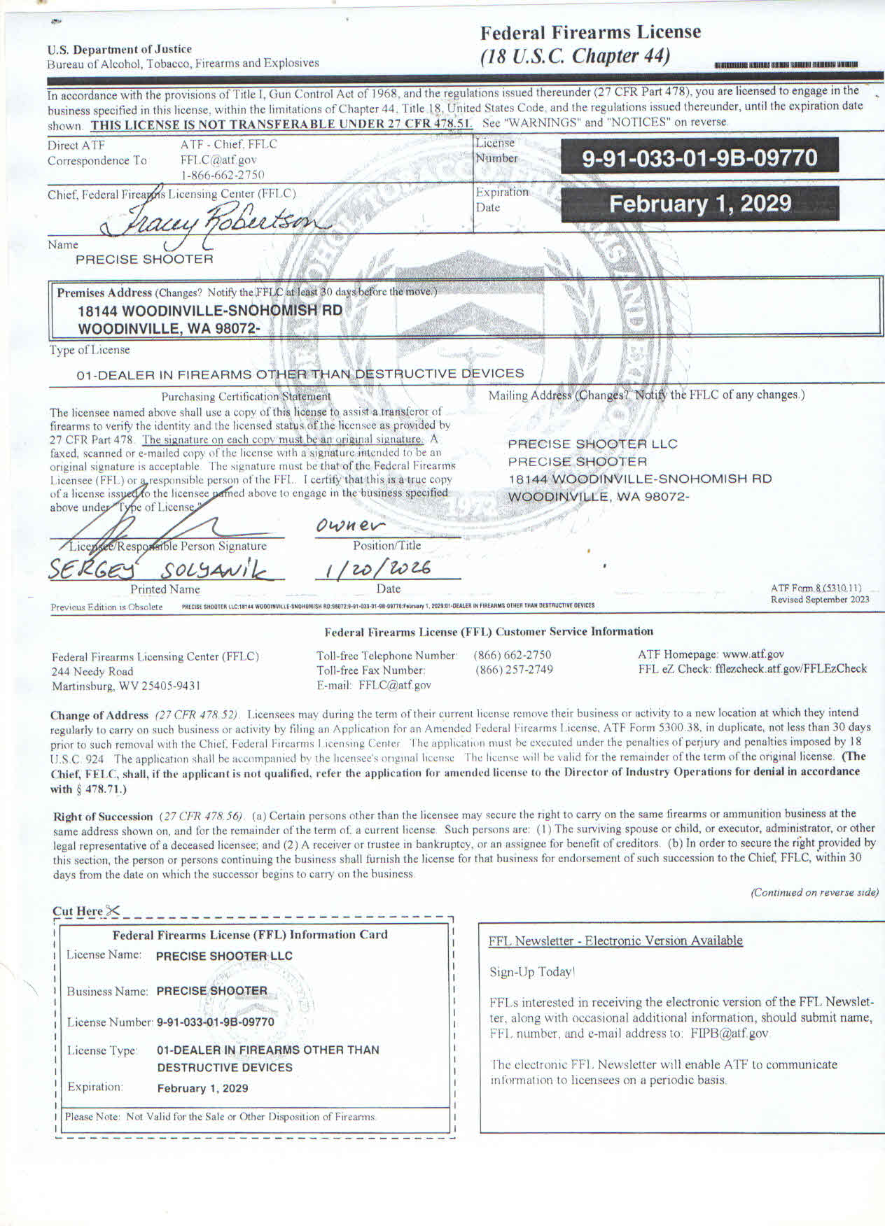 Precise Shooter is such a dealer. We are conveniently located in Woodinville right at the intersection of 405 and 522 and offer some of the lowest firearm