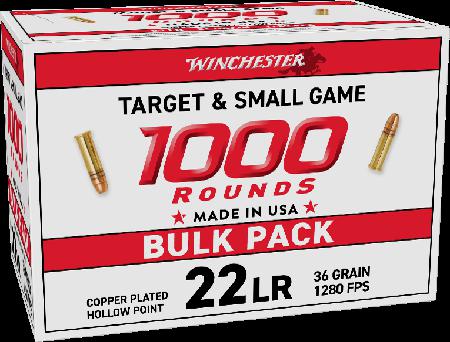 Cartridge 22 Long Rifle - Best Use Range & Target - Grain Weight 36 Grains - Quantity 2000 Round - Configuration (2 Boxes of 1000) - Muzzle Velocity 1280 Feet Per Second - Muzzle Energy 131 Foot Pounds - Bullet Style Plated Hollow Point - Lead Free No - Velocity Rating Supersonic