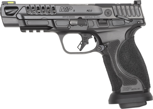 The M&P� M2.0� Competitor� HD provides the highest level shooting experience for those who measure time in fractions of seconds. Specifically engineered for speed the Competitor HD features a spiral fluted stainless steel barrel and a lightened slide with deeper more aggressive serrations for the most agile competition M&P yet. The stainless steel frame with new texturing on the sides makes this pistol melt into your hand and balance like an extension of your arm. The Competitor HD inspires you to train harder go faster and compete more as you push limits of what a factory pistol was capable of. - 5 Barrel and All-Stainless Frame- Heavy stainless build and 5 barrel reduce recoil for faster more accurate follow-up shots. - Enhanced Frame Texture- Aggressive texture ensures secure non-slip grip even in wet or sweaty conditions. - HIVIZ Tritium/Fiber-Optic Front Sight- Hi-viz tritium/fiber-optic combo ensures quick bright sight picture in varying lighting. - 5 1:10 twist stainless steel spiral fluted barrel w/Armornite� finish. - Stainless steel Lightening cut slide w/Armornite� finish. - Blacked-out serrated U-notch rear sight. - HIVIZ� tritium/fiber-optic front sight. - Full-size stainless steel frame w/Armornite� finish. - Extended mag release. - Flat-face trigger. - Thumb Safety. - Frame is equipped with a front rail. - Total of four interchangeable palmswell grip inserts. - Ships with (four) 17-round magazines. - width 1.67 in - length 8.25 in - height 5.8 in - weight 34.5 oz - CALIBER 9MM - SIZE FULL - CAPACITY 17 - ACTION STRIKER FIRED - BARREL LENGTH 5 - GRIP POLYMER - SIGHTS NIGHT SIGHTS - OPTIC READY YES - SAFETY THUMB SAFETY - COLOR/FINISH BLACK - STATE COMPLIANCE DE - THREADED BARREL NO - BARREL MATERIAL STAINLESS STEEL - FRAME STAINLESS STEEL - LASER NO - NUMBER OF MAGAZINES 4 - 10LB TRIGGER NO - MODEL M&P 2.0 METAL HD