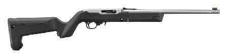 Caliber: 22 LR - Stock Black Magpul Hunter X-22 Backpacker - Capacity 10 - Thread Pattern 1/2-28 - Front Sight Fiber Optic - Rear Sight Adjustable Fiber Optic - Overall Length 34.50 - Barrel Length 16.40 - Barrel Material Stainless Steel - Barrel Finish Satin Stainless - Length of Pull 13.50 - Weight 4.4 lb. - Twist 1:16 RH - Grooves 6 - Features a Magpul� X-22 Backpacker stock with an ergonomic handguard optional QD sling mounting capability integrated storage compartment in the grip a hinged storage compartment in the stock capable of storing up to three spare 10-round magazines an MOE SL� non-slip rubber buttpad and a unique locking interface to attach the barrel assembly to the receiver when being transported. - BX-Trigger� with a light crisp 2.5-3 pound trigger pull weight with minimal overtravel and a positive reset. - Detachable 10-round rotary magazine features a unique rotor to separate cartridges and provide reliable feeding. - Easy-to-use prominent magazine release provides smooth no-fuss removal of flush-mounted magazine. - Precision-rifled cold hammer-forged barrel with a 1/2-28 thread protector. - Positive push-button cross-bolt manual safety. - Combination scope base adapter for both Weaver-style and .22 tip-off scope mounts included. - Match bolt release allows you to easily advance the bolt with a quick pull and release to the rear. - Heat-stabilized glass-filled polymer trigger housing assembly is precision made of high-tech material for improved manufacturing tolerances impact and abrasion-resistance and an unmatched ability to withstand the elements. - This legendary action is a tried and true Ruger design that ensures consistent reliable performance. - Includes four 10-round BX-1 magazines.