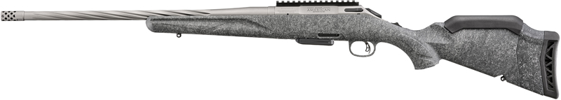Caliber: 350 Legend - Stock Gray Splatter Gen II American - Barrel Fluting Spiral - Barrel Length 20 - Barrel Finish Gun Metal Gray Cerakote - Thread Pattern 1/2-28 x 0.4 - Capacity 5 - Magazine Type Flush Fit AR-Style - Sights None-Picatinny Scope Base - Material Alloy Steel - Weight 6.4 lb. - Twist 1:16 RH - Overall Length 41.25 - Length of Pull 12-13.75 - Grooves 5 - Splatter finished stock provides excellent grip without being too sharp or abrasive. - Soft rubber recoil pad features a large radius on the heel for easy shouldering and improved geometry that progressively collapses to reduce felt recoil. - Removing the installed spacer allows for length of pull to be adjusted from 13.75 to 12. - Installed low comb improves sight alignment when using magnified optics but can be removed when utilizing low-mounted sights. - Professionally applied Cerakote coating on barrel muzzle brake receiver and bolt handle results in a durable easy-to-maintain finish. - Medium contour barrel features deep spiral flutes that reduce weight at the muzzle end of the barrel to improve balance without sacrificing stiffness or accuracy. - Threaded barrel with factory-installed radial port muzzle brake is cold hammer-forged resulting in ultra-precise rifling that provides exceptional accuracy and longevity. - Intuitive three-position tang safety locks the bolt preventing inadvertent bolt opening while allowing the rifle to be loaded with the safety engaged. - Ruger Marksman Adjustable trigger offers a crisp release with a pull weight that is user-adjustable between 3 and 5 pounds. - Patented Power Bedding integral bedding block system positively locates the receiver and free-floats the barrel for outstanding accuracy. - The one-piece bolt is CNC machined from stainless steel for smooth operation and the familiar three-lug design with 70� throw provides ample scope clearance. - Oversized bolt handle for positive bolt manipulation with a 5/16-24 thread pattern for easy replacement. - Factory-installed one-piece Picatinny scope base. - Available accessory stock weight kit adds up to 1.6 pounds to the butt of the rifle to absorb recoil and improve the rifle's balance when utilizing heavier muzzle devices. - Also includes: one magazine; steel sling swivel studs.