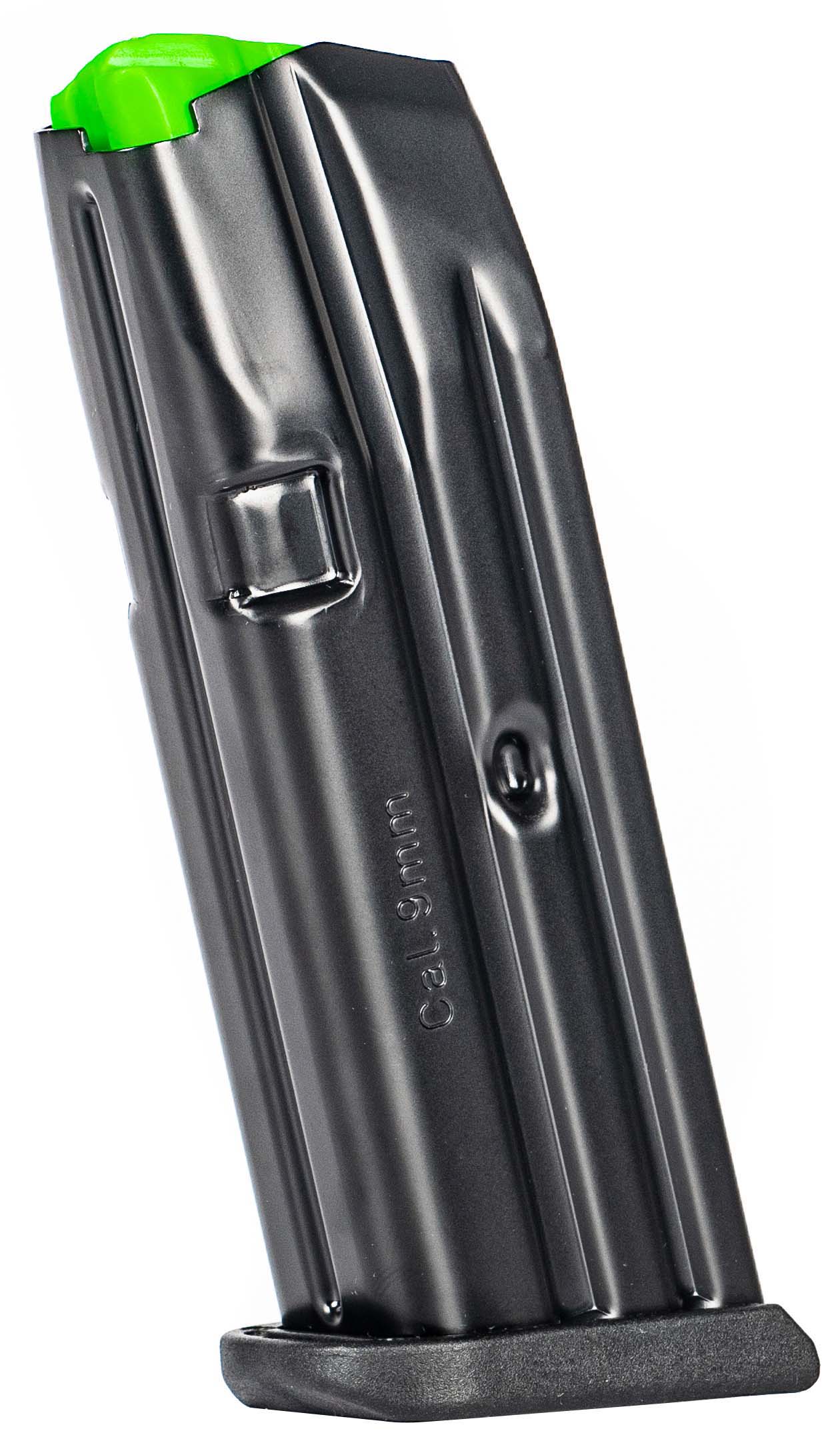 GLOCK� 19 9MM 10-ROUND FLUSH FIT MAGAZINE - Compatible Firearms: Glock 19 - Caliber: 9mm - Capacity: 10 rounds - Coating: Anti-Friction - Follower: High visibility Green High-impact polymer - Tube: Heat treated carbon steel - Spring: High tensile music wire - Floorplate: High-impact polymer - YOU DO NOT NEED TO REPLACE YOUR MAGAZINE CATCH - Standard Glock replacement floorplates will not work with this magazine - This magazine is not compatible with the Glock 19X pistol