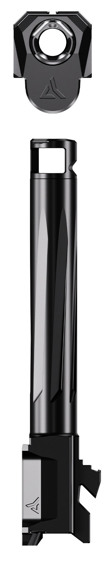 The Radian� AFTERBURNER + RAMJET combo provide unprecedented recoil reduction and match grade accuracy in a concealed carry package. The threadless barrel design allows for effortless install/removal for cleaning while LEGAL FOR SALE IN ALL 50 STATES*. - The AFTERBURNER compensator is machined from hardened stainless steel and the RAMJET barrel from hardened 416R SS; both are enhanced with a Radianite coating. This combination achieves low friction high hardness and high corrosion resistance making overall durability and erosion from muzzle blast a non-issue. Angled front faces on the AFTERBURNER aid in holstering. - The INTRA-LOK� mounting system uses the taper lock principle; a tapered locking screw interfaces with an angled V-groove on the underside of the barrel. This perfectly times the compensator as it locks down onto the upper barrel profile on the muzzle end of the barrel. - INTRA-LOK� allows the user to simply slide the compensator over the barrel insert and tighten the locking screw making for a simple and repeatable installation process. This system allows the user to easily remove the barrel from the slide for cleaning. - Installed onto a Glock G17 the AFTERBURNER + RAMJET combo only increases the overall length of the slide by .47 allowing compatibility with all G34� holsters. - Engineered specifically to run 124 grain and heavier 9mm ammunition. - This combination kit is for: GLOCK G17 Gen 5 / G47 / G49 (or compatible)