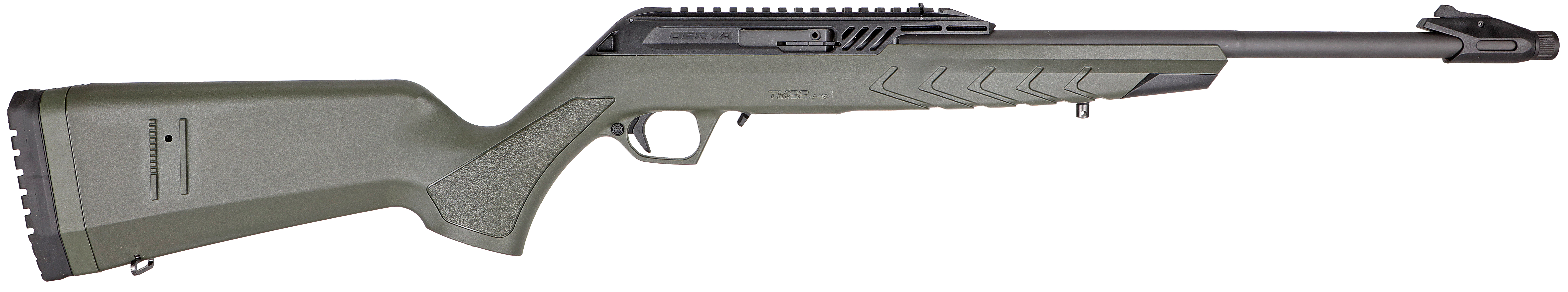 Derya TM22 Standard: always the underdoga modern classic .22LR rifle that seamlessly blends cutting-edge innovation with timeless craftsmanship proving that reliability and performance don't need the spotlight to shine. Making it the perfect everyday companion for shooters of all ages and generations it features an 18 target-performance barrel a 34 overall length and a modernized adjustable stock with the ability to add or remove basepads to adjust the length of pull offering a custom fit and versatile performance. Enhanced by a patent-pending front rail rear rail and front bead sight for precision targeting it's built with no shortcuts using black melonite steel parts and a black polymer stock for lightweight durability and enduring style. It comes with a 10-round polymer magazine plus optional 15- and 25-round aftermarket magazines delivering reliable fun straight out of the box whether you're at the range or passing down a legacy that always comes out on top. - Model Name: TM22 Standard - Threaded: No - Caliber: 22LR - Front Sight: Ramped (Removable) - Capacity: 10 rds - Rear Sight: Rail - Weight: 4.85 lbs - Action Type: Semi-Automatic - Overall Length: 34 - Finish: Black Anodized/ODG Polymer - Overall Width: 1.96 - CA Compliant: Yes - Overall Height: 7 - MD Compliant: Yes - Barrel Length: 18 - MA Compliant: Yes